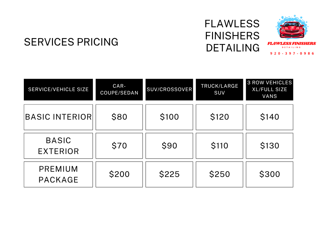 ⚡ Gloss & Guard Spray Wax: Need that extra pop? We’ll add a hydrophobic spray wax that makes water bead off and leaves a mirror-like shine. [$30+]